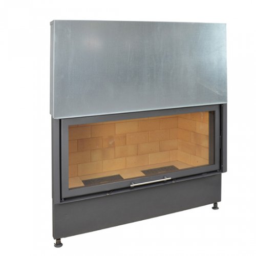 Топка с горизонтальным прямым стеклом придает камину оригинальный вид и увеличивает обзор огня. Данная топка оборудована подъемным механизмом двери, что гораздо упрощает процесс закладки дров. Благодаря системе "чистое стекло", сажа не оседает на стекло и смотровое окно остается чистым в течение всего топочного процесса. Внутренние стенки топки полностью проложены специальным огнеупорным материалом. Регулируемые ножки дают возможность устанавливать прибор на необходимую высоту.