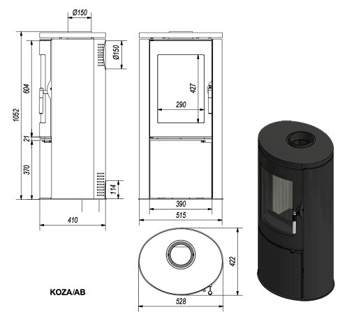 - Диаметр дымохода, (мм) 150