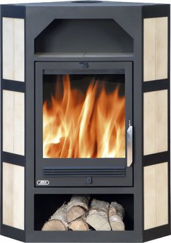 Модель Lahti представляет угловые камины чешской компании АВХ. Это большая мощная печь, способная отапливать помещение в 220 куб. метров. Топка закрыта плоским прямоугольным окном, выполненным из термостойкой стеклокерамики. В процессе эксплуатации печи стекло остается прозрачным, благодаря обдуву его внутренней поверхности горячим воздухом. Корпус каминной модели сделан из листовой стали, а внешняя отделка - из светлой керамики. Высокая тепловая эффективность обусловлена технологией двойного (тройного) дожига, когда для горения используется не только воздух помещения, но и горячие воздушные потоки, подаваемые в верхнюю часть топки. В результате топливо сгорает практически полностью, включая взвесь, находящуюся в воздухе топочной камеры.Для работы печи требуются сухие дрова. Расход топлива - 2,5 кГ в час.